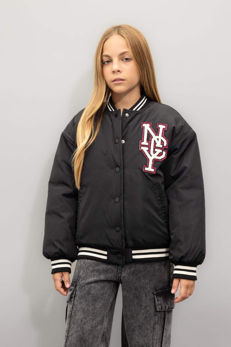 Defacto Girl Waterproof College Collar Bomber Jacket..