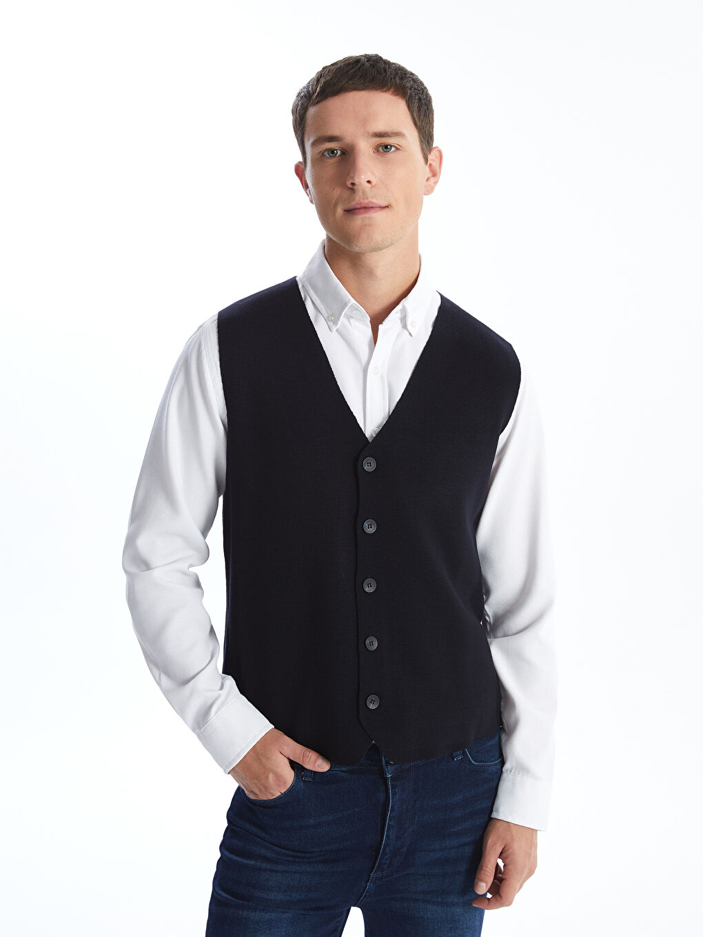 حجز لقطة : LC Waikiki Standard Fit V Neck Mens Tricot Vest